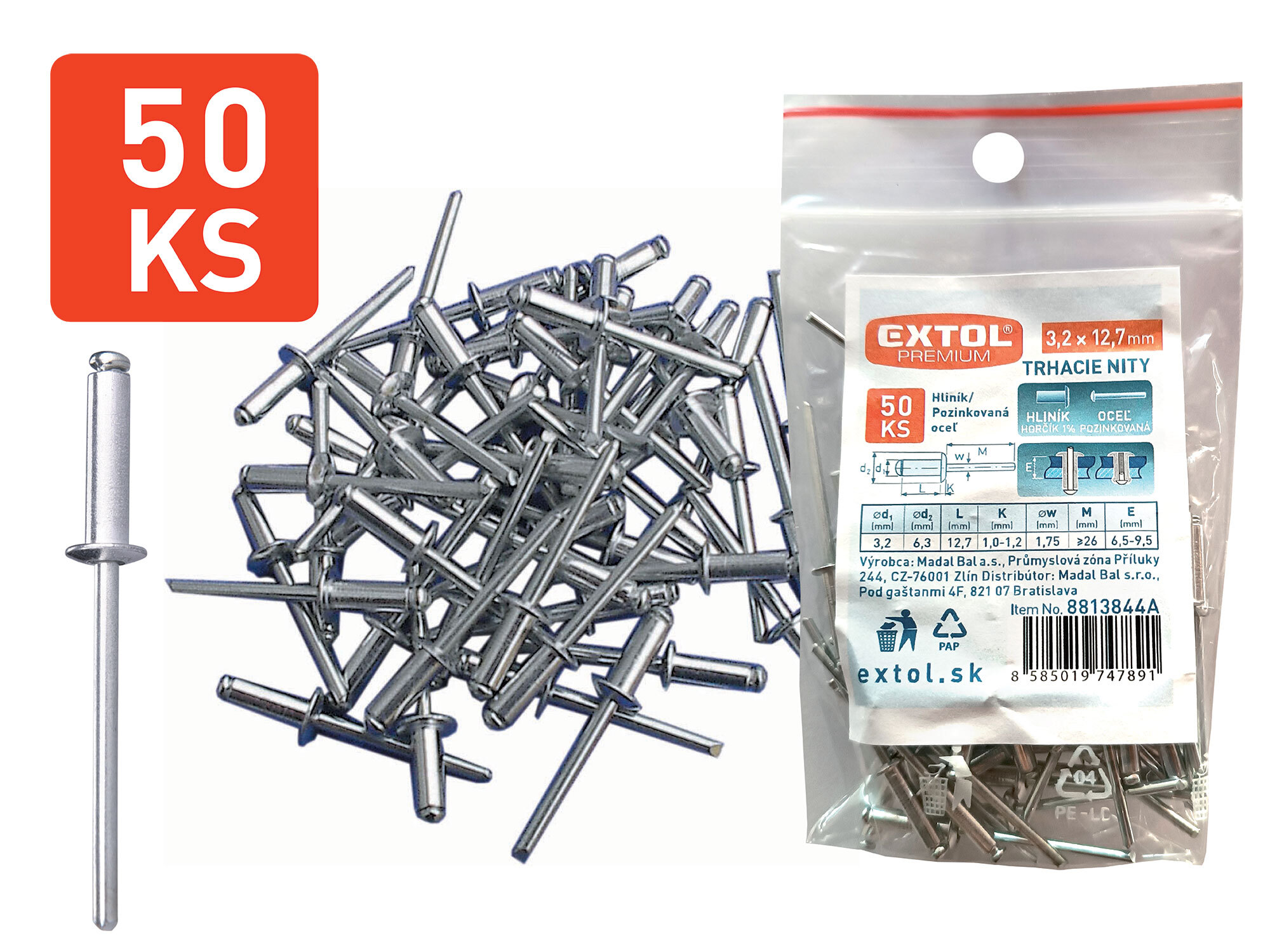 - Nity trhacie hliníkové 3,2x12,7mm 50ks, EXTOL PREMIUM