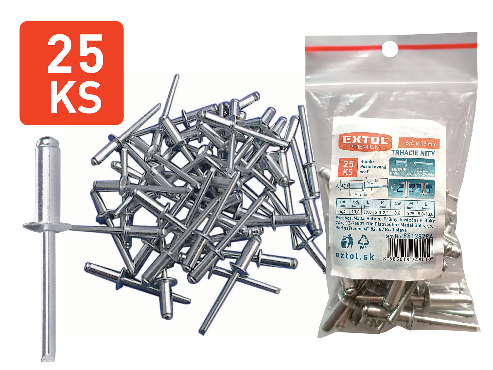 - Nity trhacie hliníkové 6,4x19mm 25ks, EXTOL PREMIUM