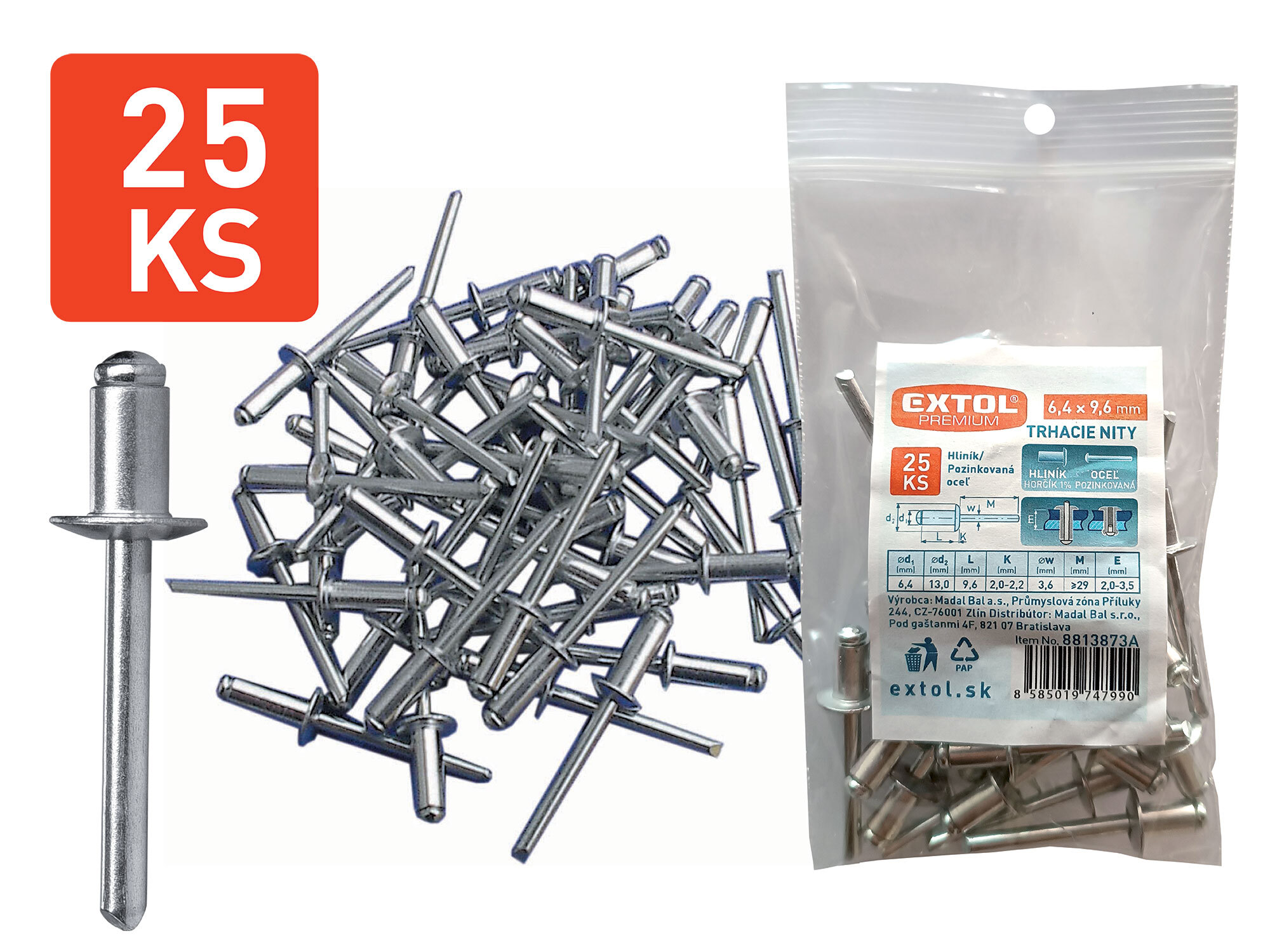 - Nity trhacie hliníkové 6,4x9,6mm 25ks, EXTOL PREMIUM